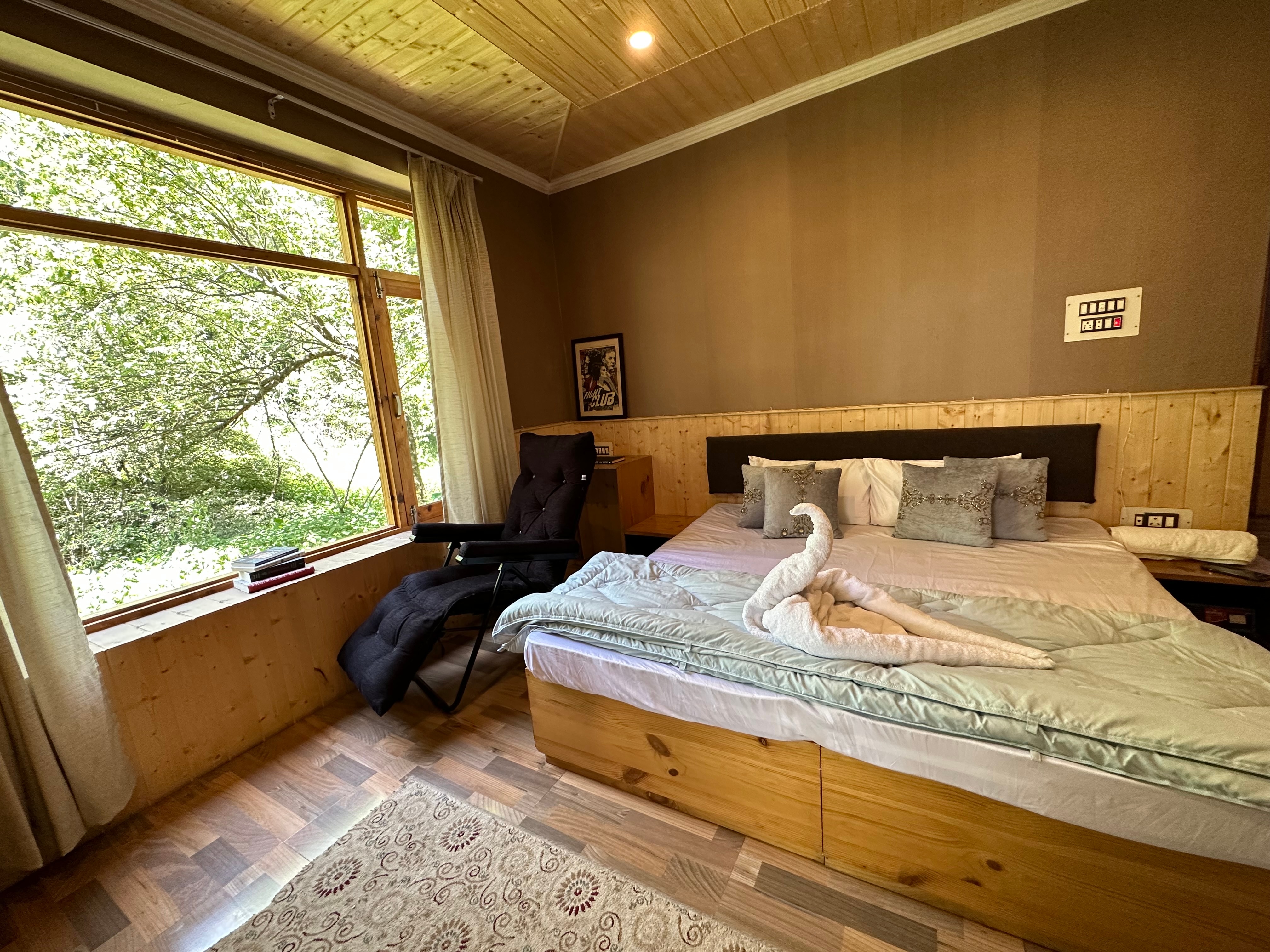 A beautiful farm stay amidst lush green hills and a rejuvenating river. The balconies open to meadows of daisies and flowers, an ...Read moreBedroom 1