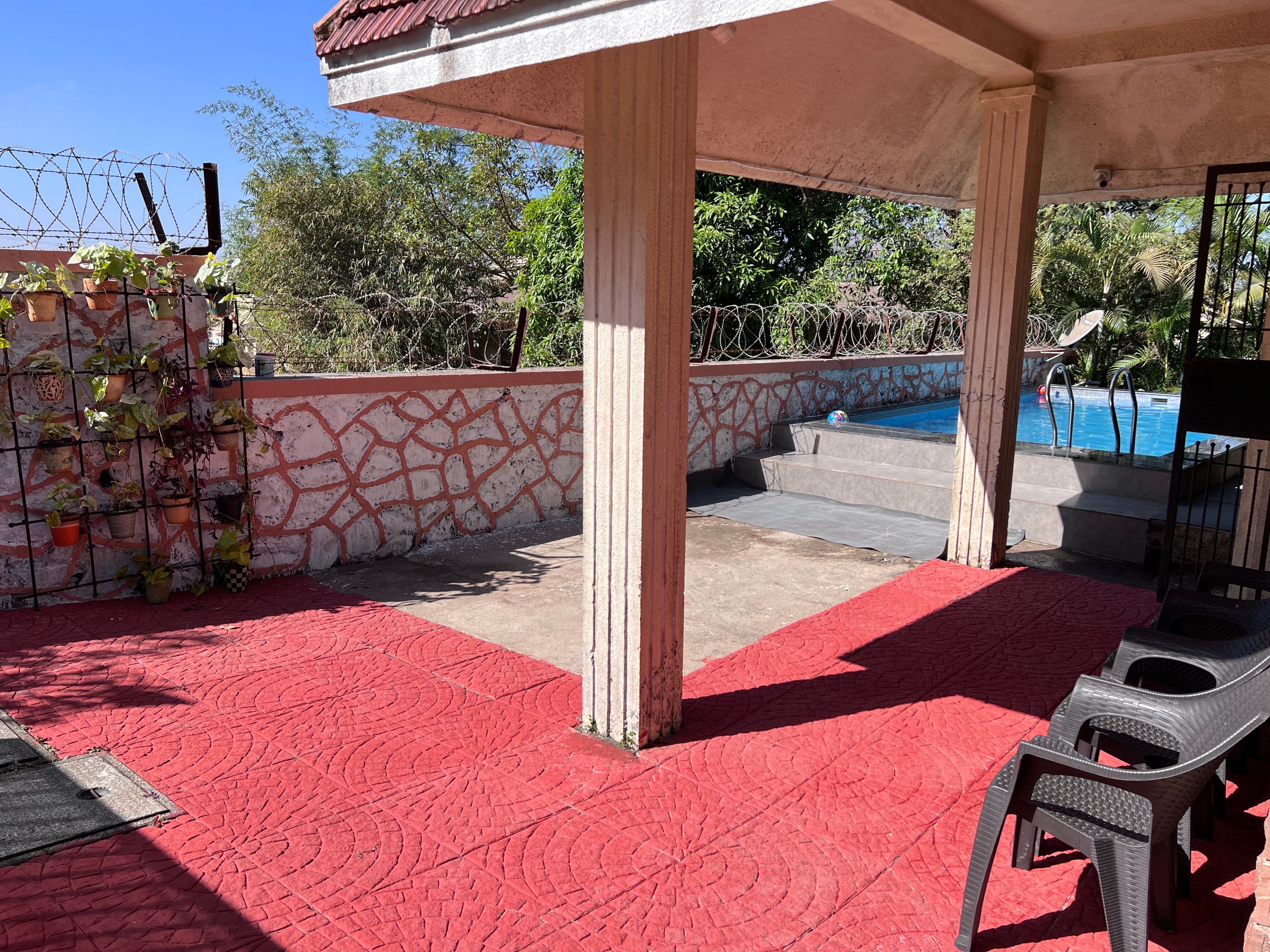 Entire 3 BHK pool villa offering a kitchen living room, parking & hill views