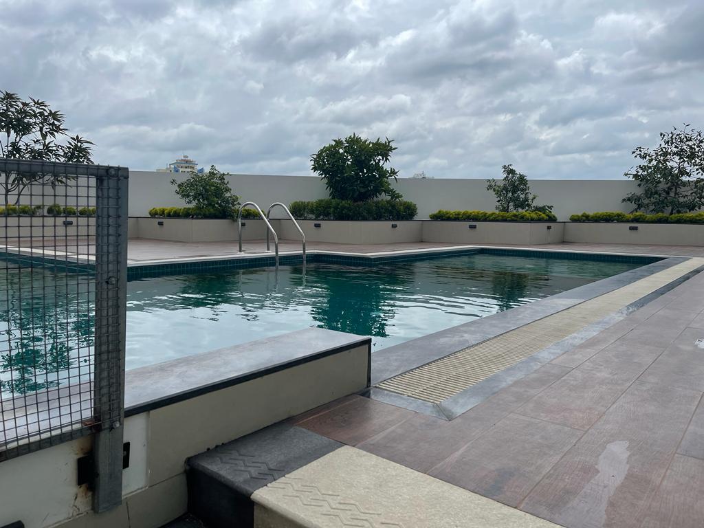 Entire pool apartment offering a living room, caretaker & parking